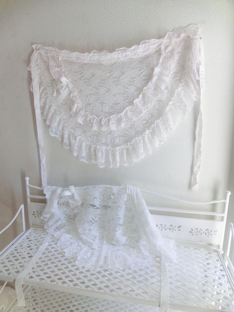 ナイロン・レーヨン・コットン他 ふんわりソフトながら、総レースのわりにはやや網を持たせ、ケープとしてご利用いただくときにも大変美しく決まります☆彡