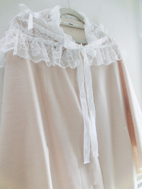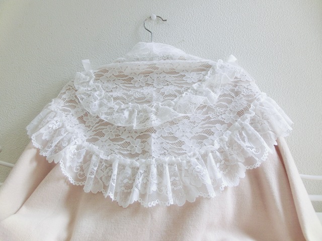 たちまち麗しのレース服に早変わりする「ケープ使い」とってもおススメ。 こうして冬のコートにも合わせられます。むしろ、冬コートやセーターなどに合わせることでレースの繊細さや美しさが映えるのでぜひ。