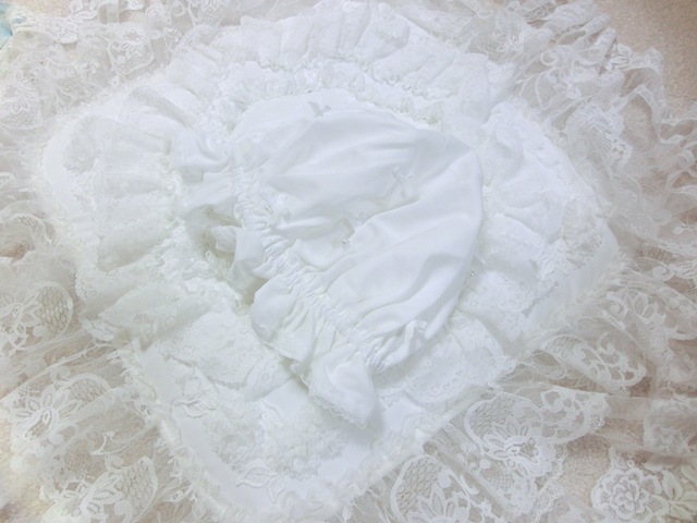 品 名 | リボンリボン×パール フリルガーゼのナイト・キャップ ホワイト♪ |