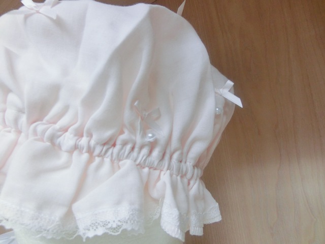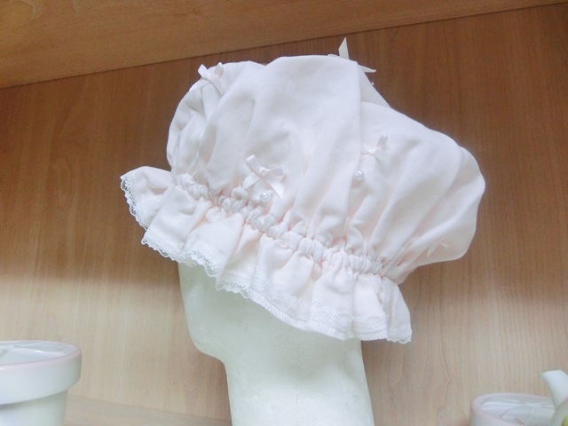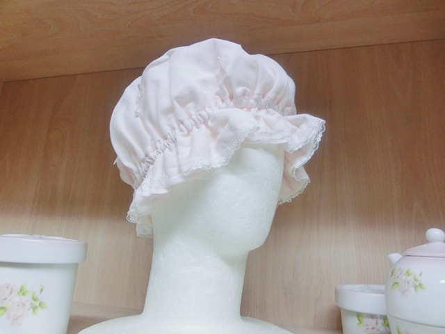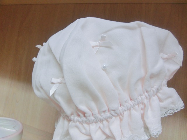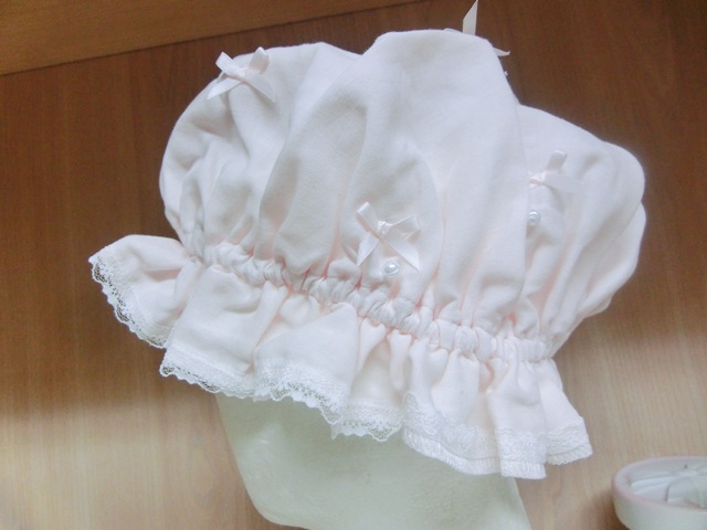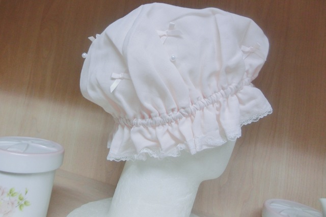 品 名 | リボンリボン×パール フリルガーゼのナイト・キャップ 薄ピンク♪ |