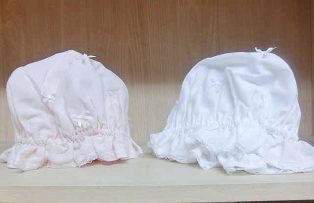 こちらはナイティ専門メーカー製 リボンリボン×パール フリルガーゼのナイト・キャップ♪