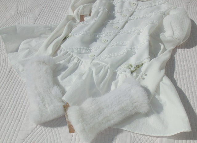 上質ホワイトミンク・ヤーン 長さ約22 親指穴あり