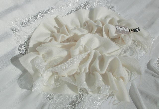 最上級カシミア100 ギャザーフリルスタイル ボリューム・マフ オフホワイト