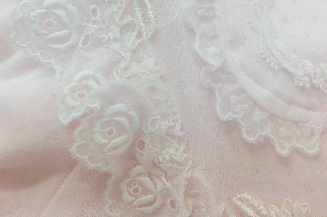 特にヨーク襟のレースたっぷりの中に散らされたお花たちの愛らしさは感動的。