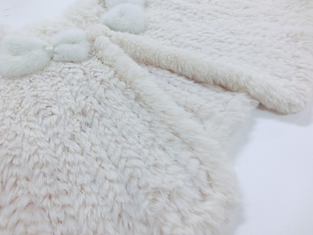 薄淡く、白い空気に溶け入りそうなホワイトピンクのレッキスに、日本のファー専門工房で職人が一つひとつ手作業で仕上げたホワイトミンクのリボンがあしらわれたプリンセスなデザイン♪