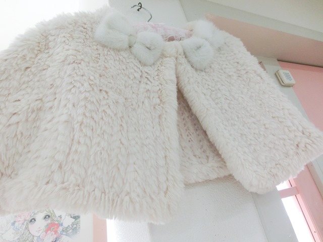 レッキスヤーン(ホワイトピンク)×ミンクリボン(ホワイト)のスイート・レディ・ケープ☆彡
