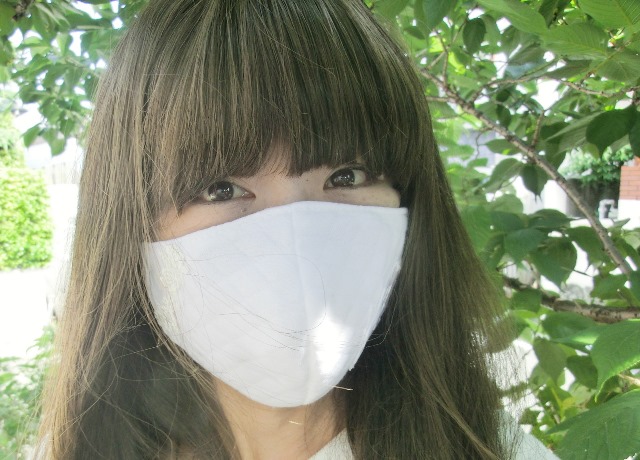 着けたときもとても清楚で優しい雰囲気。この画像↑では少し下げています。実際には目の下までしっかりカバーできます。
