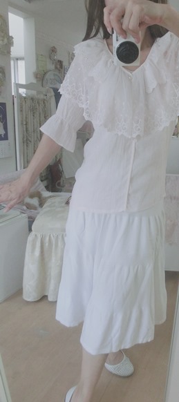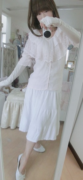 ふわヒラな幅広ふんわりチュールレースと清楚で少女めいたコットンレースを重ね、ネックラインをプリンセス的に彩るそれはそれはかわいいブラウス☆彡
