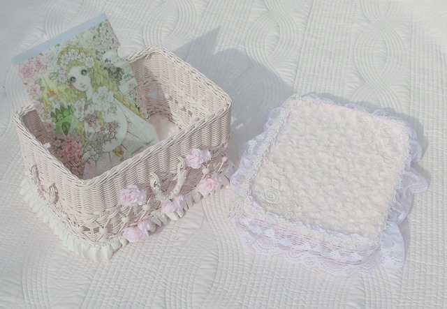 Rose Partyオリジナル・ホワイトピンク高品質ラタン ふわふわんローズの夢バスケット☆彡