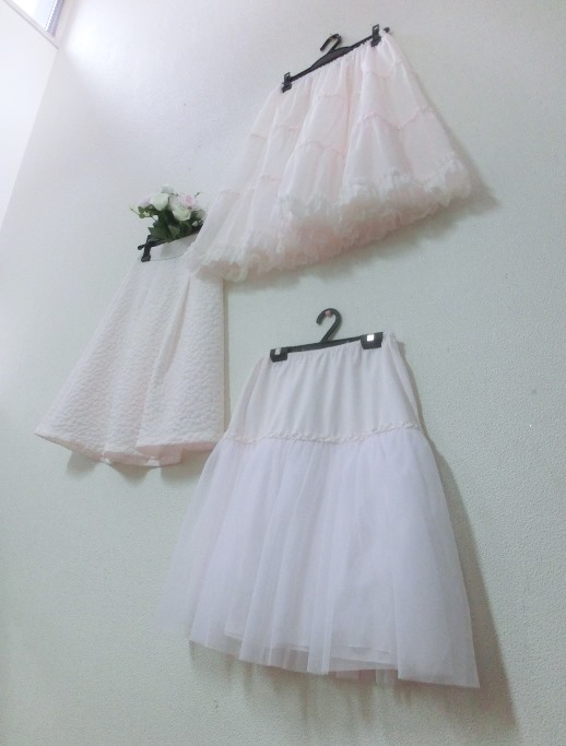 この子たちは、どちらも、大人の女性のロマンティック・コーディネートを叶える美しく高級感のある日本製チュール・スカート♪
