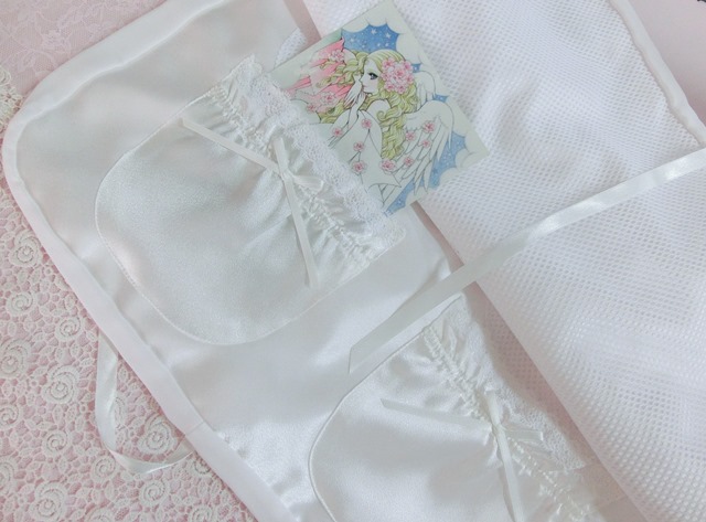 一つひとつのポケットにレースとリボンがあしらわれ、丁寧に、贅沢に。