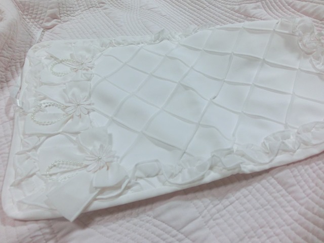 見るからに美しく上質なジョーゼットのようなやわらか素材にシフォンのリボン、お花、パール♪
