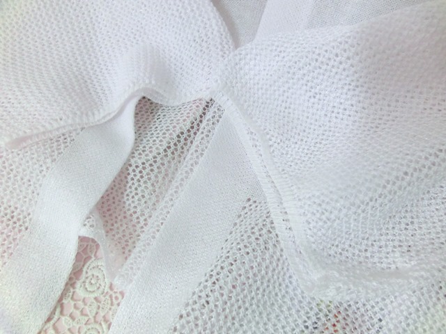 ネックラインは本体と同色の、薄手でやわらかな花レースの二段重ね。