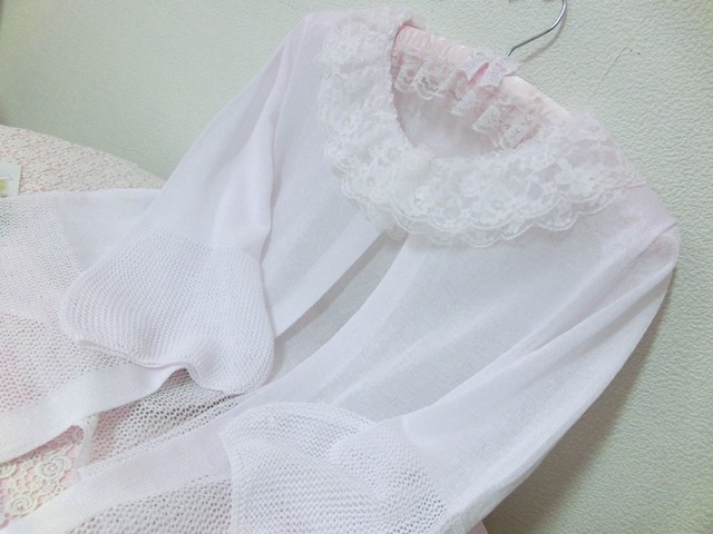 涼やかロマンティックなパフスリーブ レーシー・ニット カーディガン ホワイトピンク♪ 7,800円税込