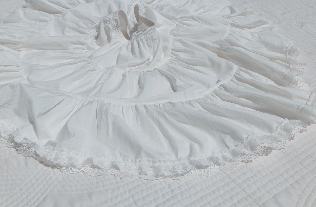 これだけの生地を使用し、また三段ティアードならではのボリューム感とドレープ感を出しつつも、薄手のコットン100なのでとーーっても軽く涼しく心地よく♪