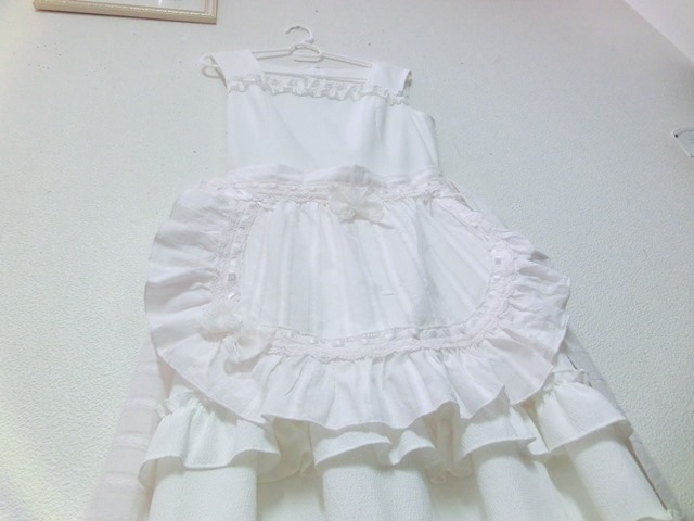 上部左右にサテンリボン、フロントと裾斜めにレース&オーガンリボン♪