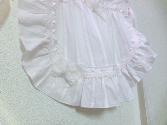 コットンドビー・リボン通しの乙女デザイン サロン・エプロン 薄ピンクカラー 5,500円税込