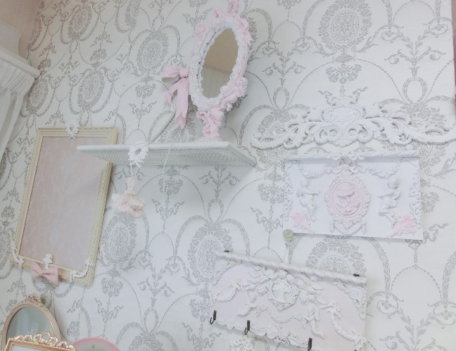 夢の国のリボン&エンジェル ミラー(置き型専用) オリジナル・ホワイトピンク♪