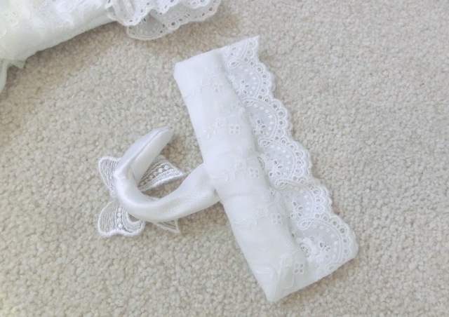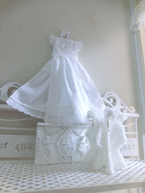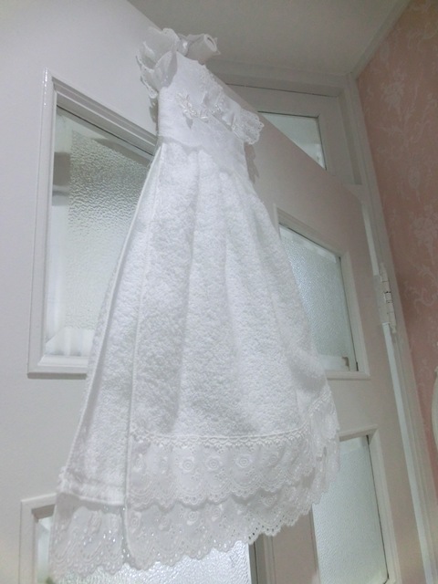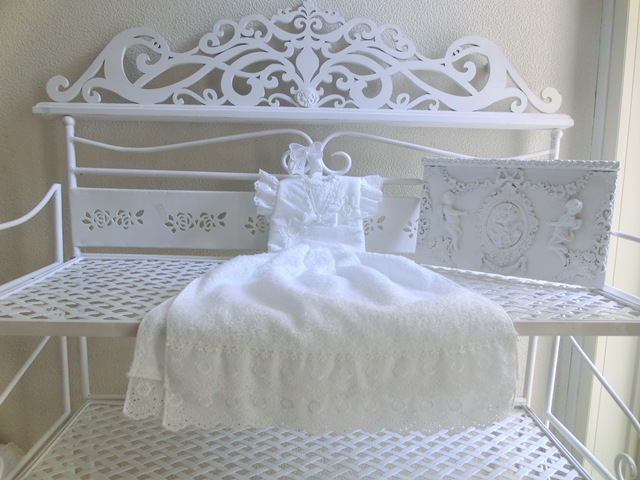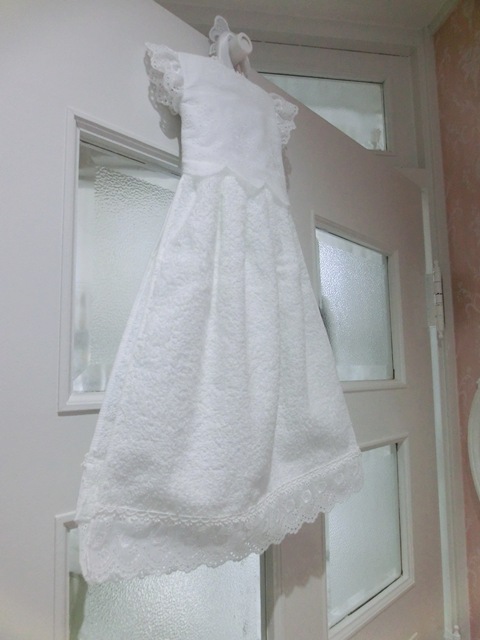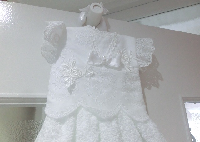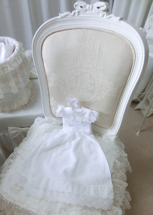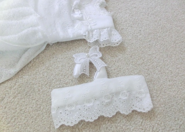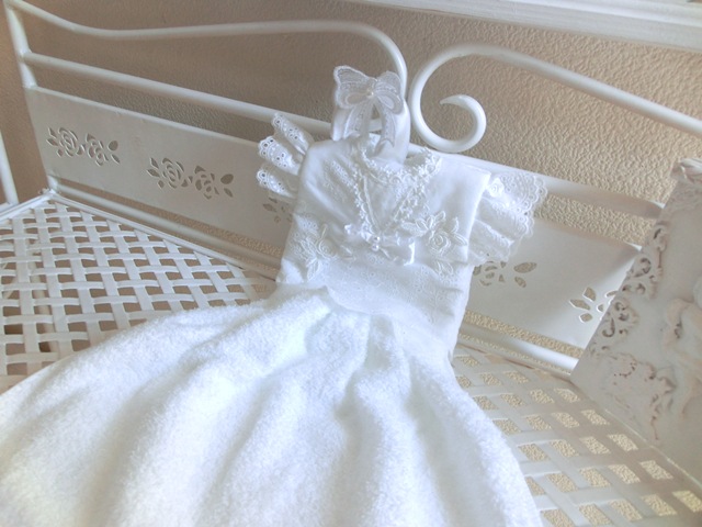 ふわっふわのパイル地を真っ白のアイレットレースでドレス仕立てに♪