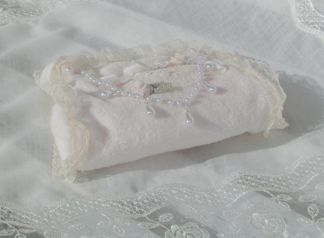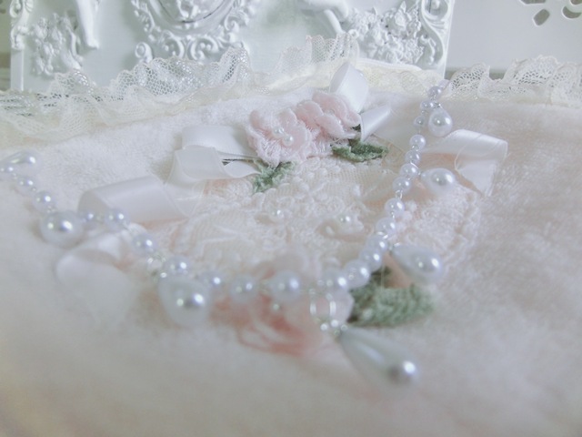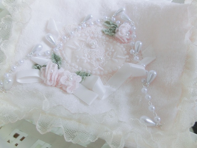 やさしい色合い、繊細な手仕事、いかにも可憐。