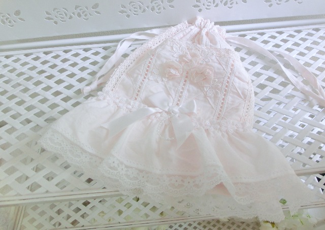 お出かけ巾着"バラのバレリーナ"☆彡 薄ピンク 16,500円税込