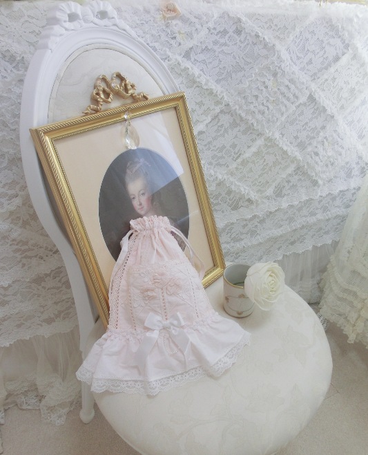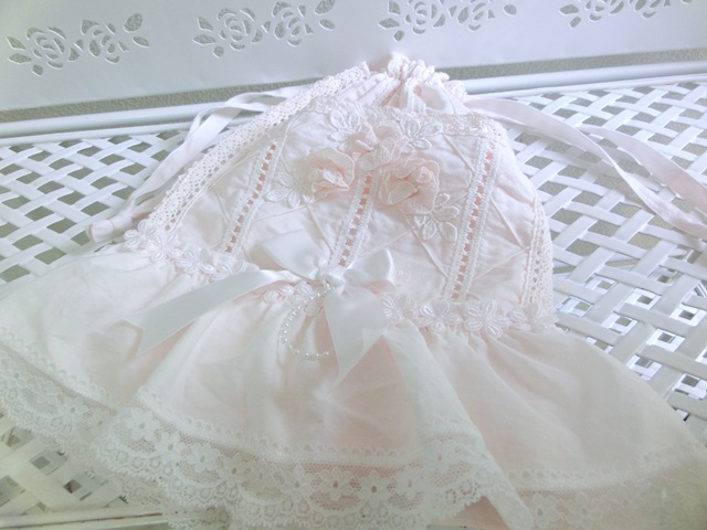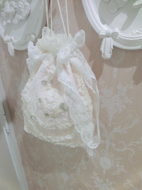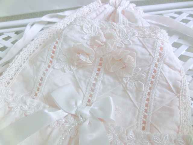 波うつレースのリボンを揺らしながらの「お出かけ巾着」(^^♪ 14,300円税込