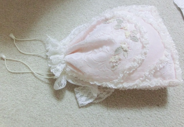 本体のみたて約25幅約18マチ約4本体は薄ピンク、レースはオフホワイト