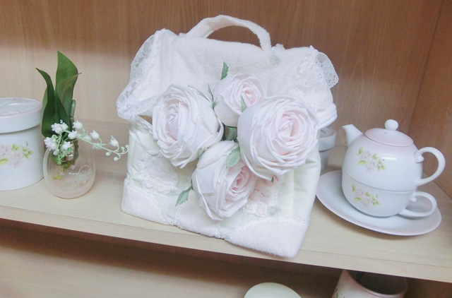 フェイスタオルに飾られた小さな小さなリボンがとびきりかわいいんです♪