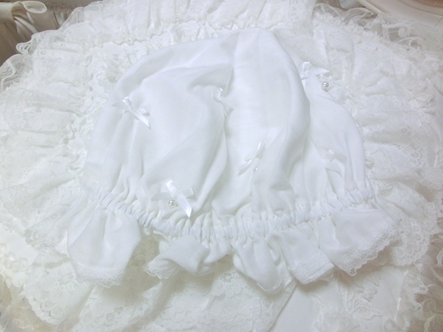 | 品 名 | リボンリボン×パール フリルガーゼのナイト・キャップ ホワイト♪ |