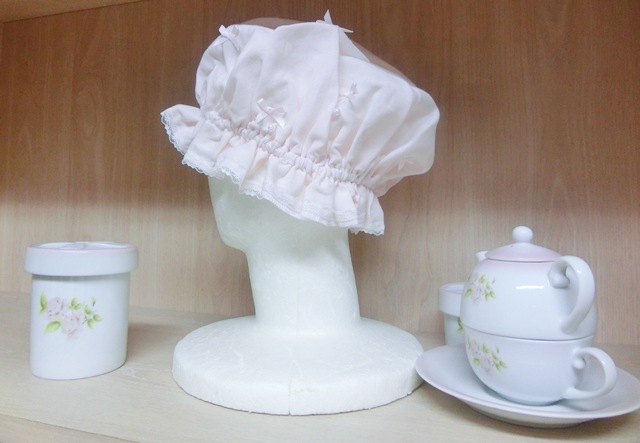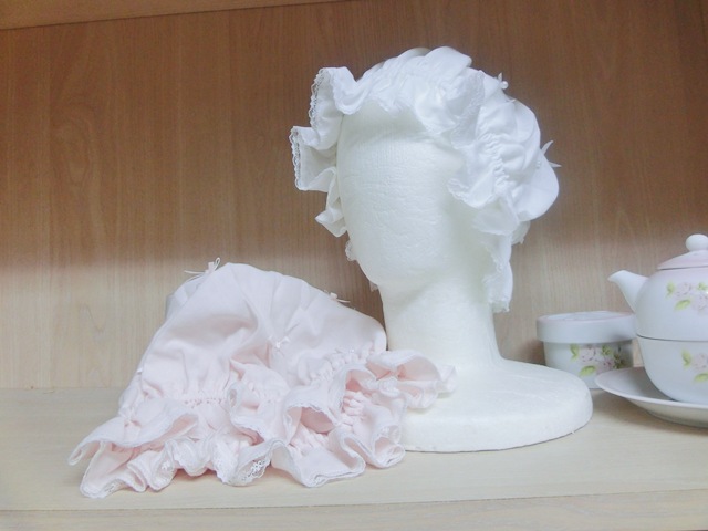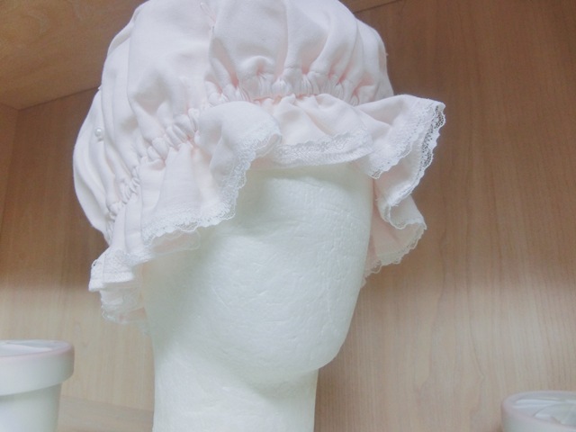 | 品 名 | リボンリボン×パール フリルガーゼのナイト・キャップ 薄ピンク♪ |