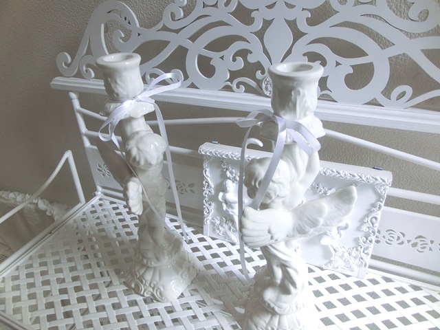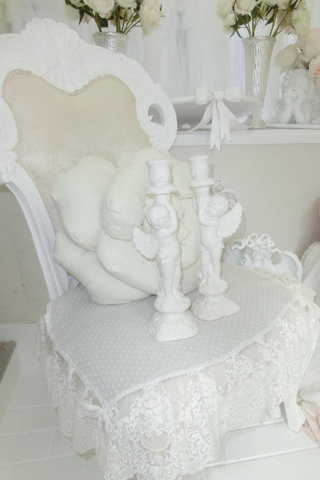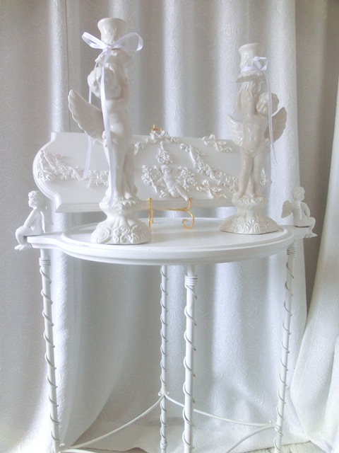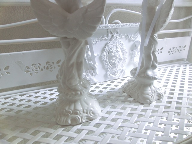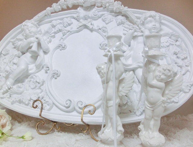 イタリア製 ドリーム・エンジェル キャンドル・スタンド 白磁 左右2点セット