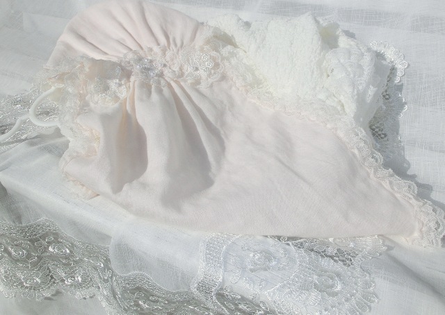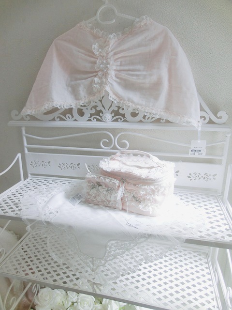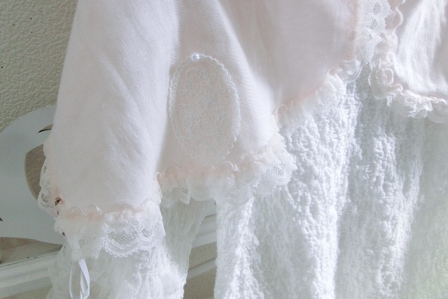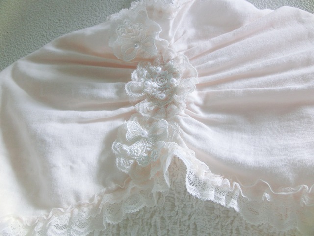 レースメーカー コットン・ガーゼのリボン・フォルム レース・ケープ ミルキィ薄々ピンク 25,300円税込