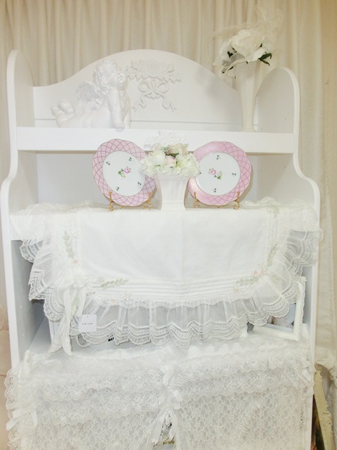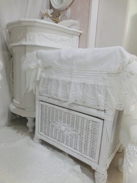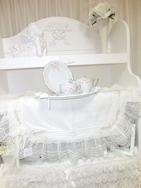 澄みきった甘い香りのそよ風のようなローンフリル、どこまでも可憐な小花とリボンローズ・デコレーション。淡いカラーと相まって主張しすぎずあくまで可憐なのがこの子の魅力。外がどんなに寒くても、いつもふんわりと春を感じさせるようなやさしい寝室、インテリア。