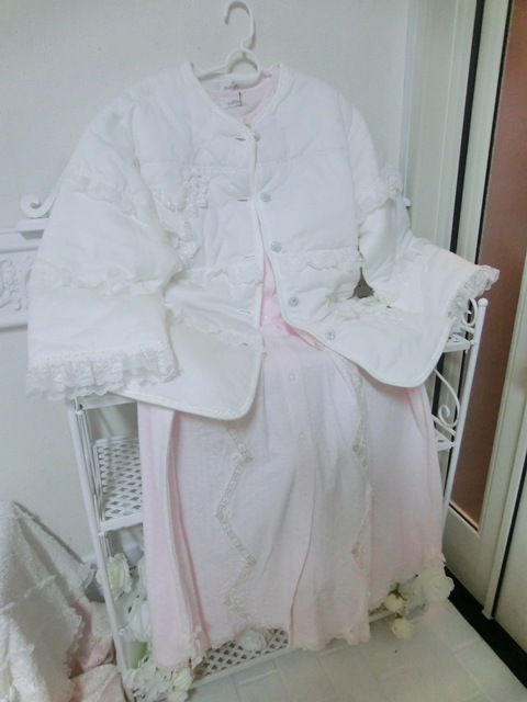 夢みるネグリの上に羽織ってピンクと白のプリンセス・スタイル。