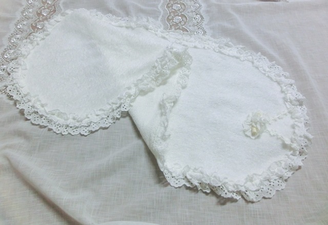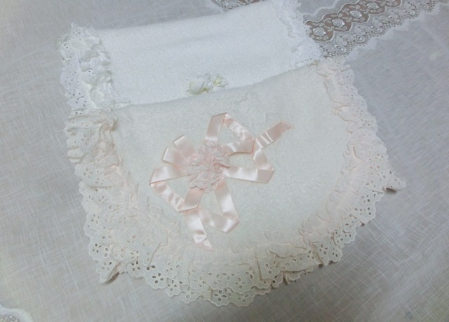 新年スペシャル・セットB レースメーカー コットンアイレット・レース飾りのオーバルフォルム・フェイスタオル ピンクと白の2枚セット☆彡