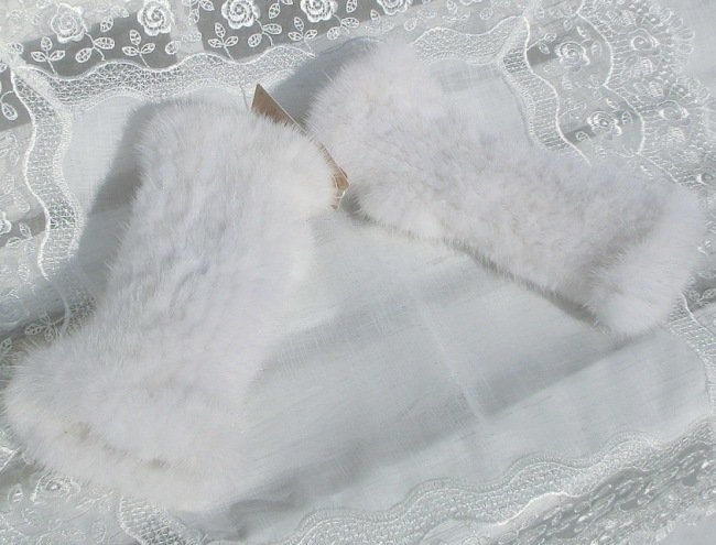 上質ホワイトミンク・ヤーン 長さ約22 親指穴あり