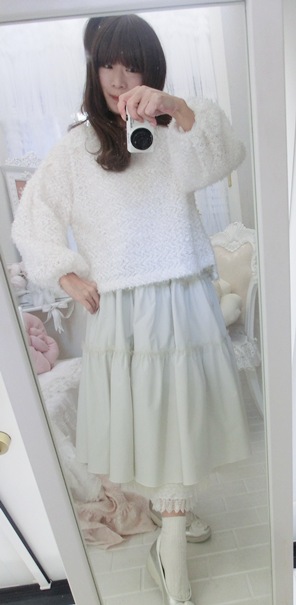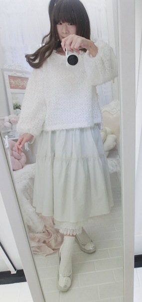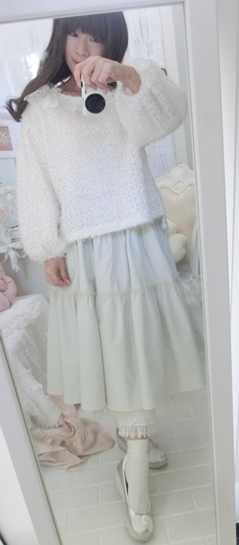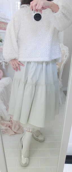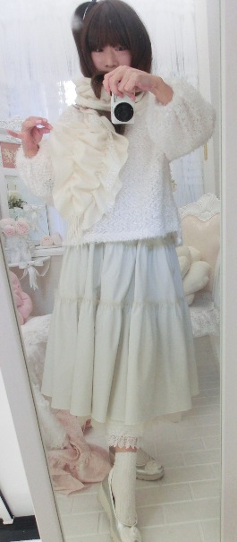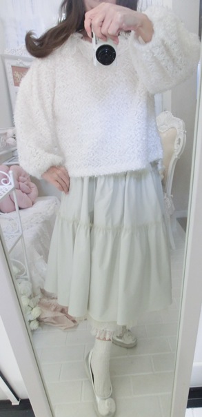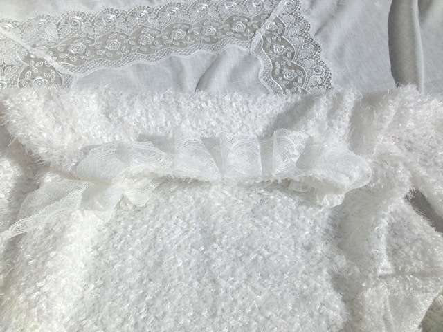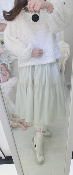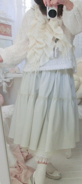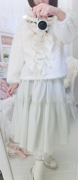 淡いホワイト・カラーとスイートなフリルデザインで、春先までお召しいただけるのもうれしいのです(^^)/