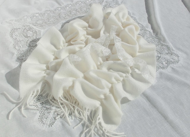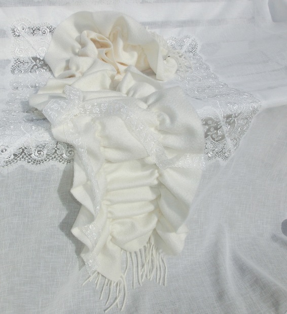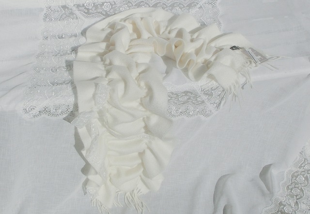 最上級カシミア100 ギャザーフリルスタイル ボリューム・マフ オフホワイト