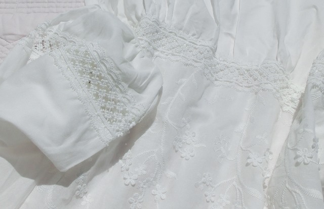 キレイでかわいいレース&モティーフ&パフスリーブ涼やかロマンティックなブラウス&清楚に揺れる白いフリル・ティアードスカート♪