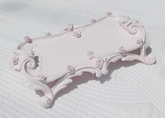 ホワイトピンク リボンとバラのロココレリーフ・トレイ♪ |