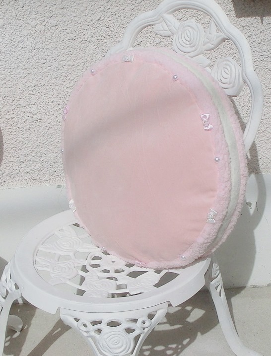 かわいらしさあふれるリボンとパールのマカロン・クッション☆彡 3,700円税込