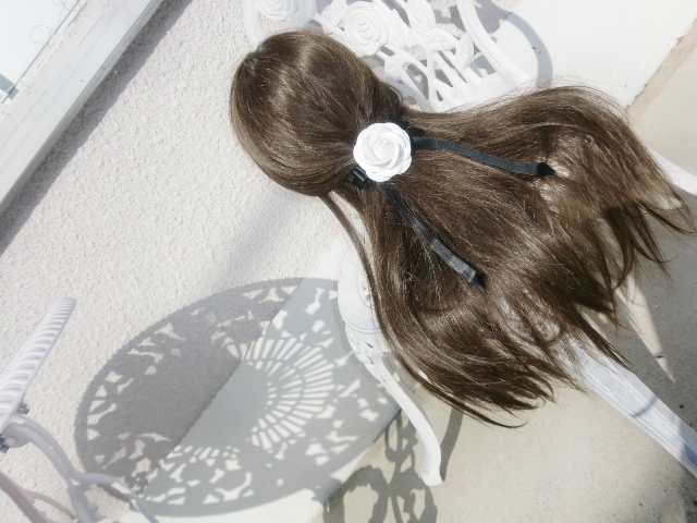 | 品 名 | リアルレザー・フリフリ カメリア ホワイト 三重サテンリボン・ロング ヘア・ゴム *カメリア取り外し可能♪ |