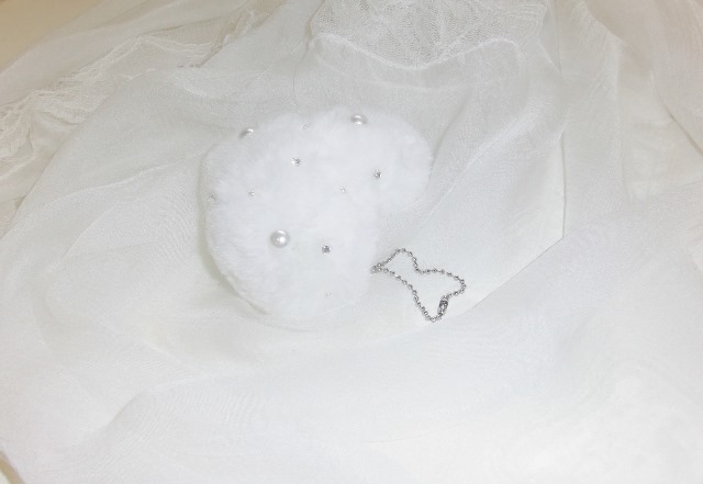 めずらしさんのホワイトハートファー・スワロフスキーエレメンツ チャーム☆彡
