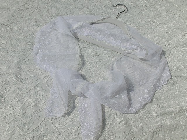 ふんわりとかすみのような優しさをかもす上等のチュールに麗しのバラ刺繍とスカラップ・・・無造作に結んだり垂らしたりするだけでたちまちロマンティックでプリンセス的な装いに仕上がります☆彡