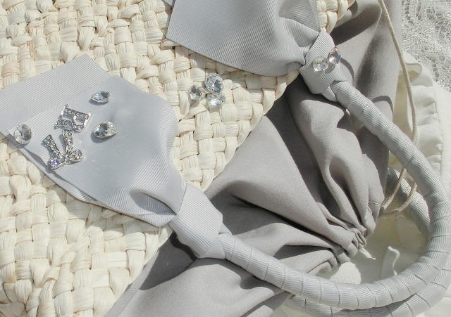 | ミルキィグレーグログランリボン ビジューカゴバッグ | |