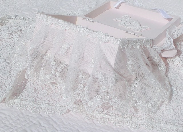 厚手でしっかりとした上質木製、エレガントなフォルムにバラ刺繍がふんだんにあしらわれたチュールレースをふわふわっと広がるプリンセス・ドレスのようにあしらい、夢っぽさとプリンセス感があふれかえっております!