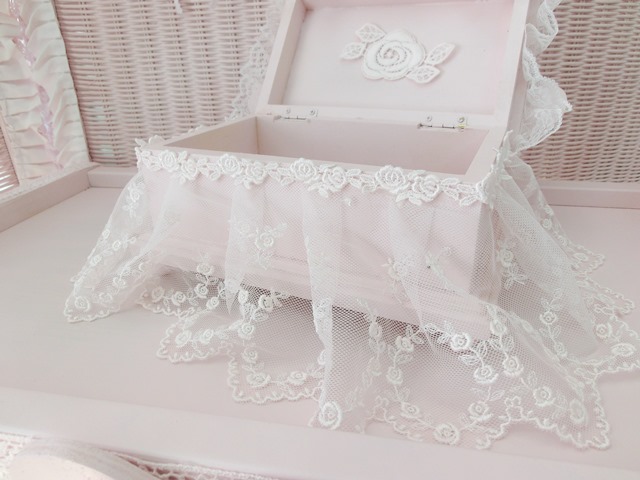 ホワイトピンク木製・リボンちゃんのプリンセス・レクタングルボックス☆彡 10,800円税込