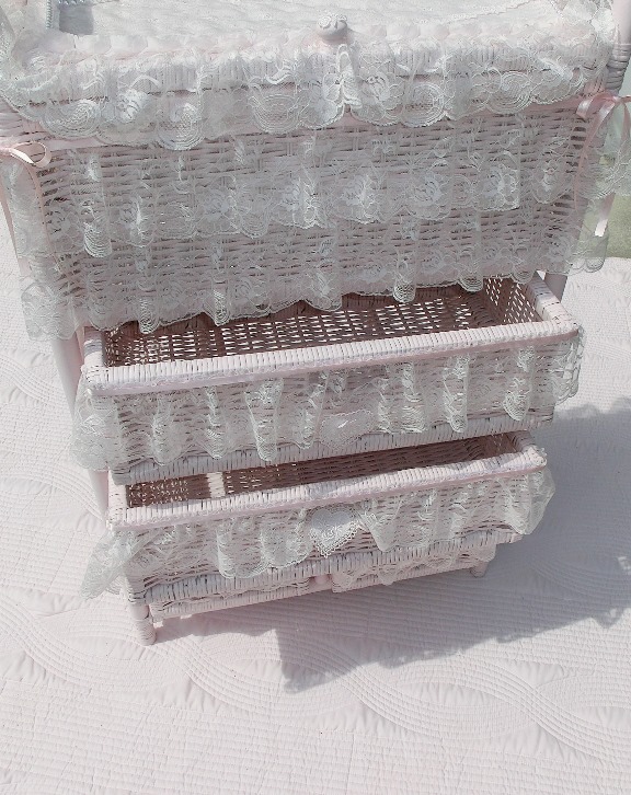 高品質ラタン ホワイトピンク プリンセスも夢みる5杯チェスト 超スペシャルアイテム! & 超・スペシャルプライス!