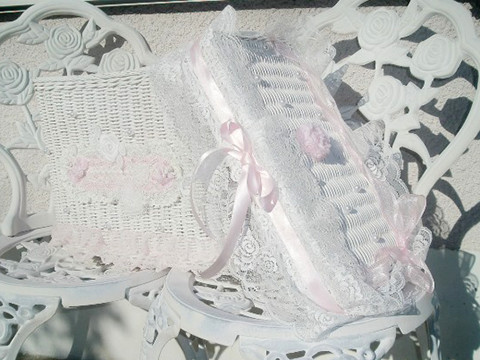 パウダリーピンク薔薇付きも+680円でご用意。基本形は画像のように右奥オーガンディ薄ピンクリボンの上にあしらいます♪もっとたくさん薔薇をつけてほしい・・・♪ とおっしゃる方はご希望に合わせてカスタマイズいたしますので備考欄にお書き添えください。