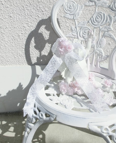 薄ピンクのバラに埋もれた"ピンクと白の夢みるバラ天使オブジェ"